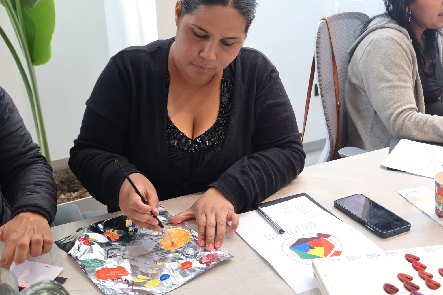 Nos enseñaron teoría del color y cómo crear un círculo de color con tintes, lo que nos permitió experimentar directamente con nuestras manos. También tuvimos modelos para practicar, lo que fue una experiencia invaluable. Gracias a COOPI, también recibimos refrigerios y ayuda con el transporte para asistir a las capacitaciones",