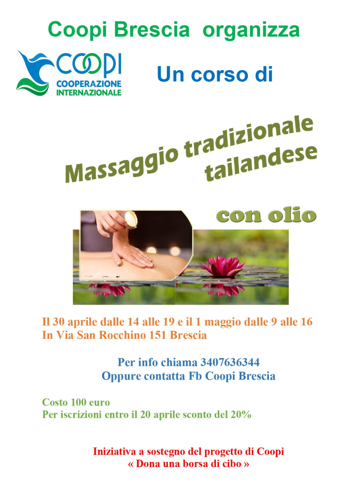 I volontari del gruppo COOPI Brescia hanno organizzato un Corso di messaggio tradizionale tailandese, un’occasione per regalarvi un momento di puro benessere all’insegna della solidarietà.