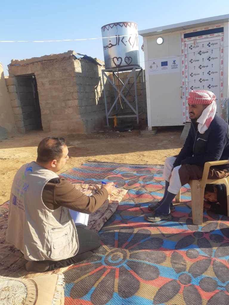 Tahseen Faleh Shakim è un giovane che vive nel villaggio di Al-Sailo Alqadim, nel governatorato di Ninewa in Iraq. Tahseen ha un handicap congenito e soffre di emiplegia. Tempo fa era completamente incapace di muoversi, poi grazie a diversi interventi chirurgici, ora è in grado di effettuare movimenti molto semplici. A causa della sua disabilità non era in grado di usare i normali servizi igienici, aveva bisogno di qualcuno che lo aiutasse. La madre di Tahseen è una donna anziana ed è la capofamiglia. Non ha le capacità fisiche sufficienti per aiutarlo, ha dovuto rinunciare al lavoro per evitare di lasciare solo suo figlio, non autosufficiente. Tutte queste cose hanno influito sulla sua salute mentale.